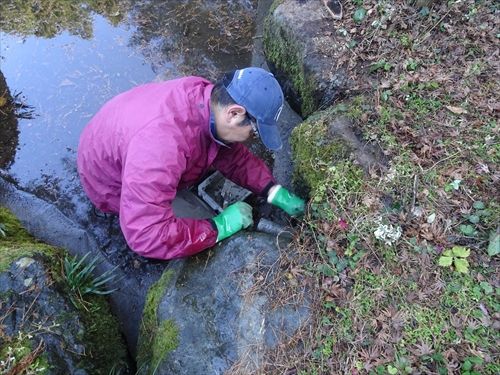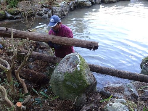 2016-12-07 午前は肉体労働 お仕事 今日は庭の池の漏水対策工事に行ってきました。高圧洗浄でブシューと異物除去 苔も汚れも吹き飛ばし 止水セメント施工 これで漏れは止まるのか!? 祈るばかりまだまだ~ 1トンはあろう材木を除去! うそ・・そんなにない便利屋さんって凄いなぁと感心していますw