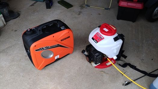 すでに工進のエンジン噴霧器を使っていて、こちらは少し使い勝手は悪いけど大活躍しています。