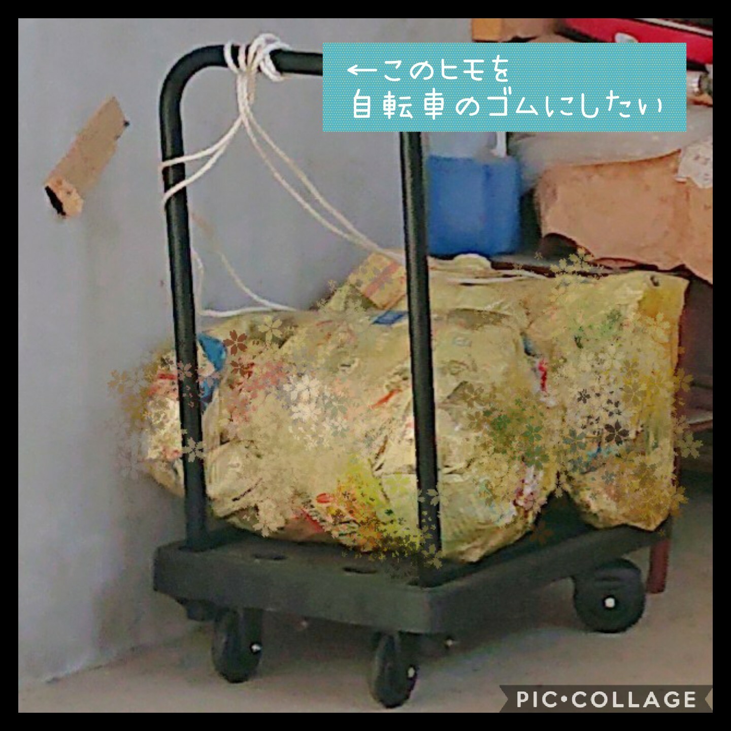 台車からゴミ袋が落ちないように固定する