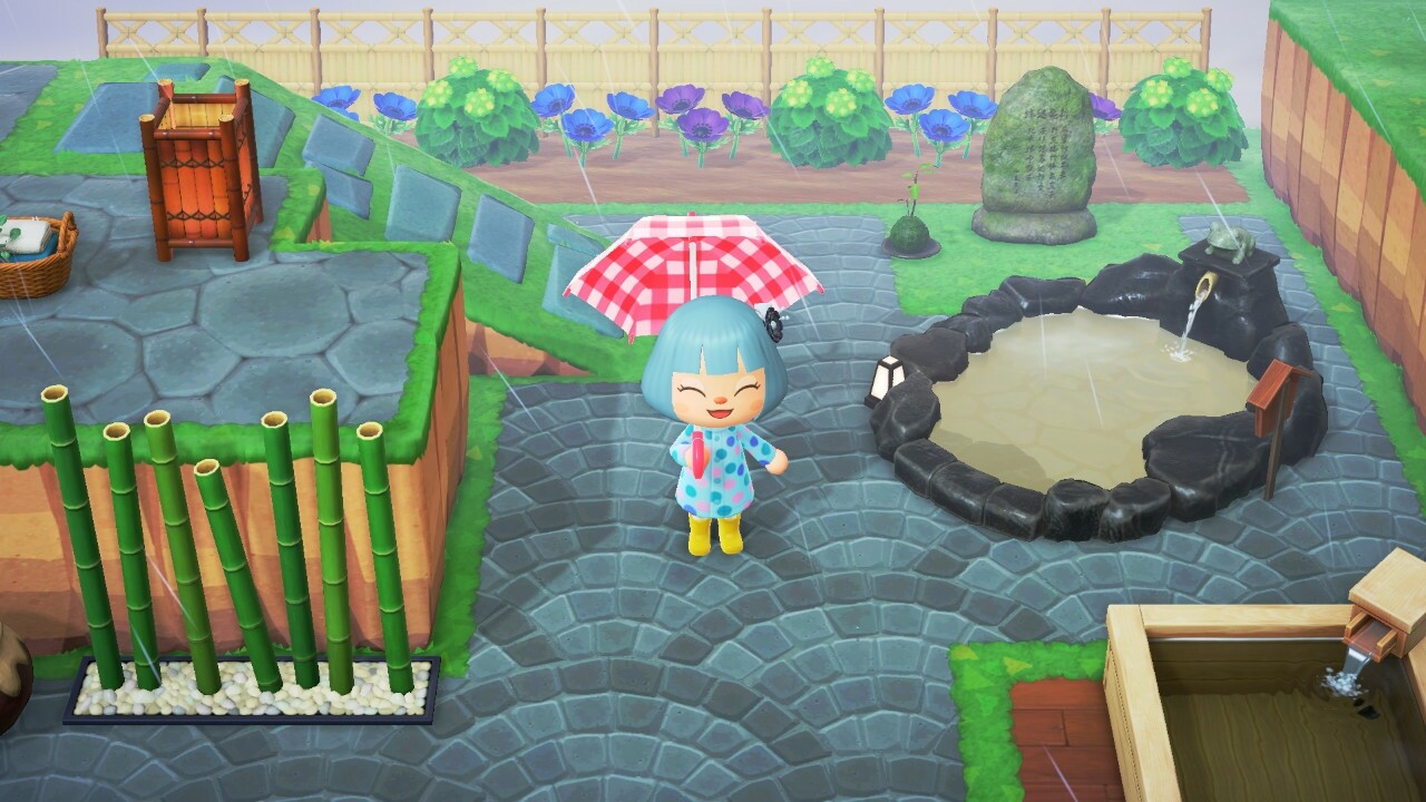 レインコートと長靴に傘さして