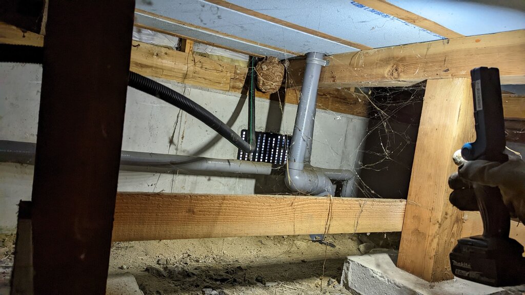 2022-06-25 スズメバチ駆除依頼が多くなってきました お仕事 害虫・害獣駆除 蜂の駆除依頼が多くなってきました。この日は床下に潜って駆除。床下はオオスズメバチの可能性もあり、「床下から~出入り」なんて聞くと緊張します。駆除の費用は、床下の作業なら1万円~3万円程度でしょうか画像のように高い基礎なら楽に入れるのですが、こればかりは難易度+危険度によります。