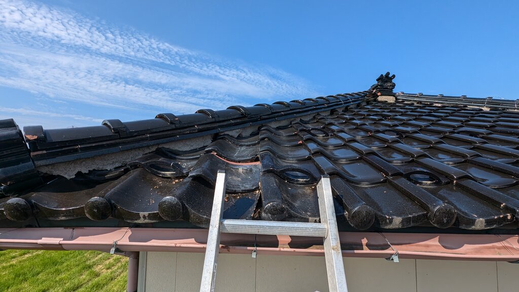 このあとは瓦屋さんがきっちり直して完了しました。