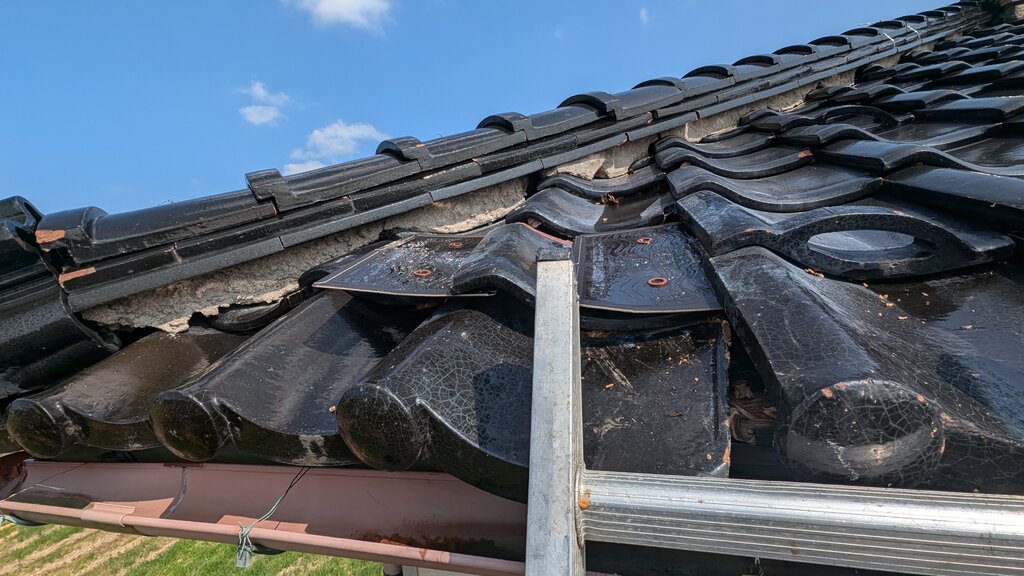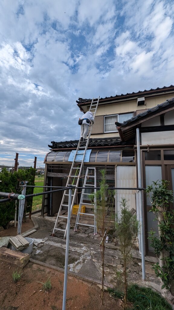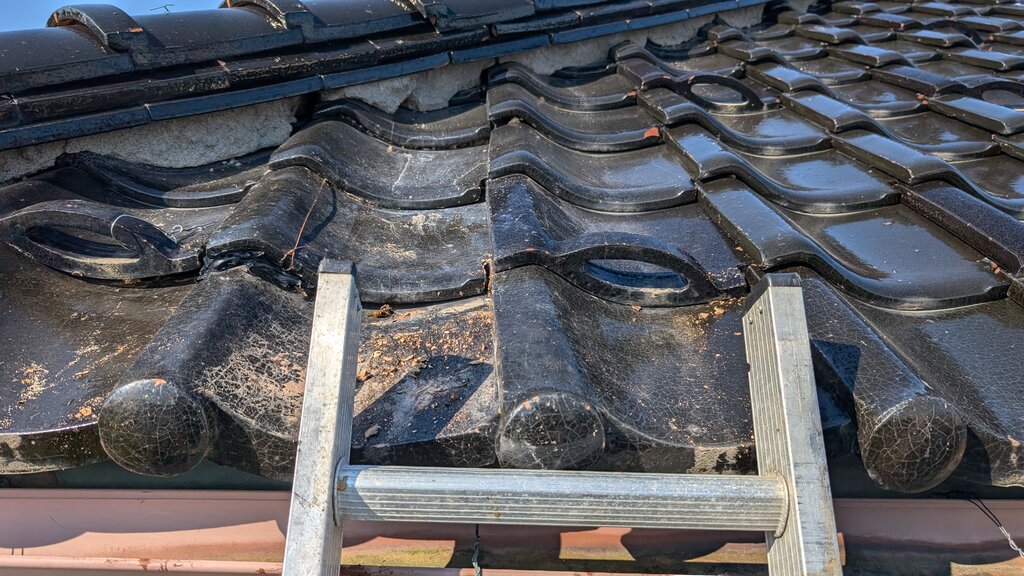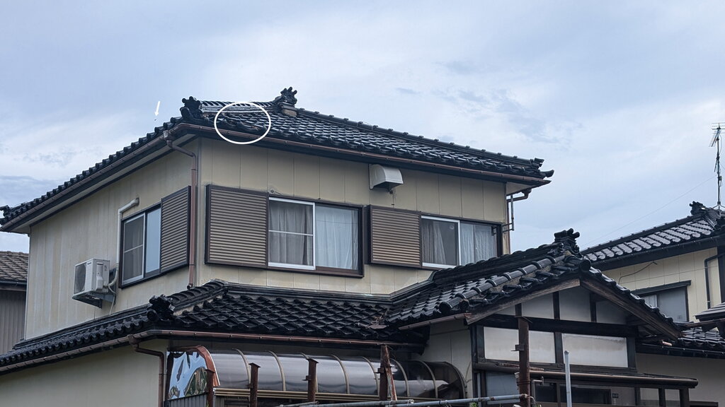 もっとよく見ると、瓦がずれてますね(瓦屋さんとも連携する必要があります)